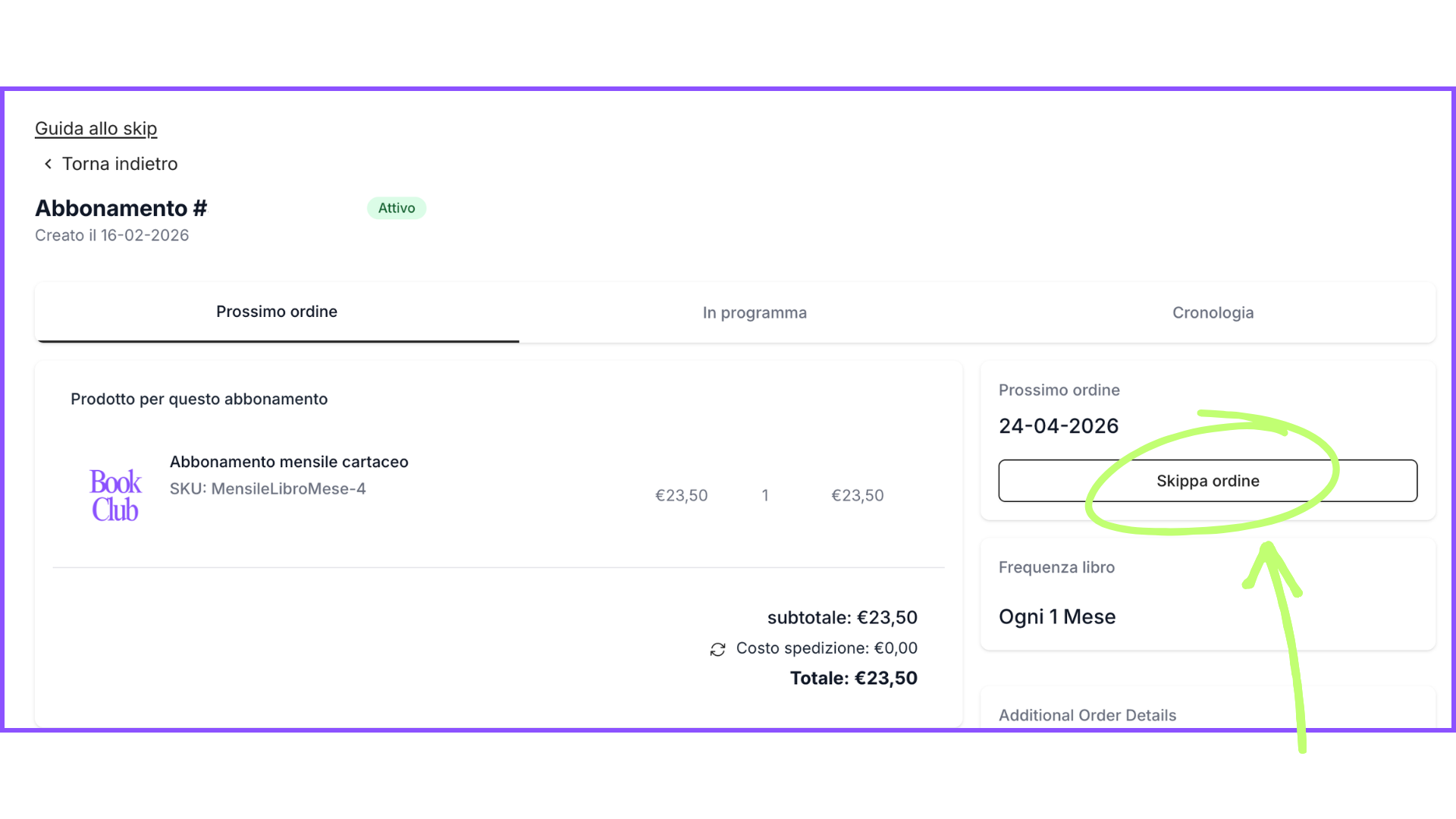 Clicca il tasto "Skippa ordine".